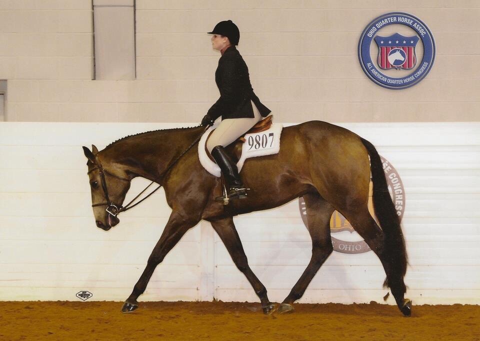 Caitlin Bacon has always had a love for animals since a young age. Her family always had golden retrievers, and a cat that occupied the basement of their lakeside home. At the age of 9, Cait attended a Girl Scout camp at a local equine facility known as Ballard Farms, and she was instantly bit by the horse “bug”. She started showing Quarter Horses on the American Quarter Horse Association circuit soon after, and the love of showing Quarter Horses has never left her. She went on to win many state and regional championships as a Youth, and then traveled with her trainer to Oklahoma, Tennessee, and Ohio, where she got a taste of the true Quarter Horse world. After earning an IBHA World Reserve Championship title, Top 5 Championship title at the NSBA World Show, and Finalists at the All American Quarter Horse Congress, Cait knew she wanted to obtain a small herd of broodmares so she could contribute to this world she loved so much! in 2014, Adam and Cait bought a yearling QH mare by the name of Indefinately Classy, aka ‘Gracie’, in hopes to breed her when she got older.